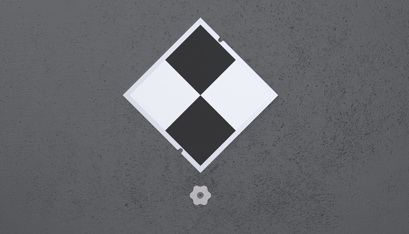 RSL401: Escudo de escáner láser de 400 x 400 mm, con patrón de tablero de ajedrez Impreso en blanco y negro en una cara, para grandes alcances al escanear
