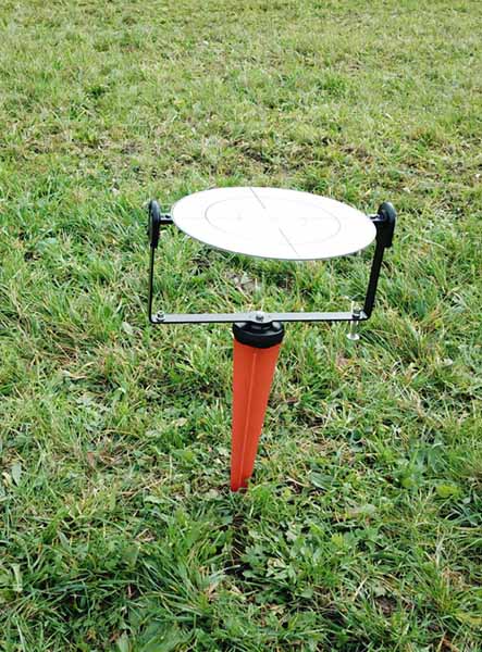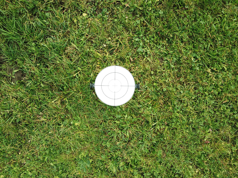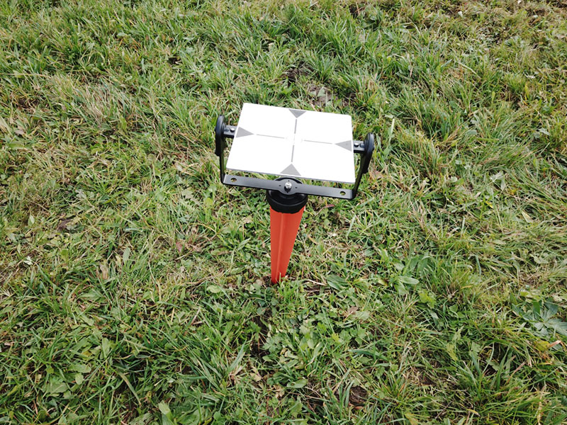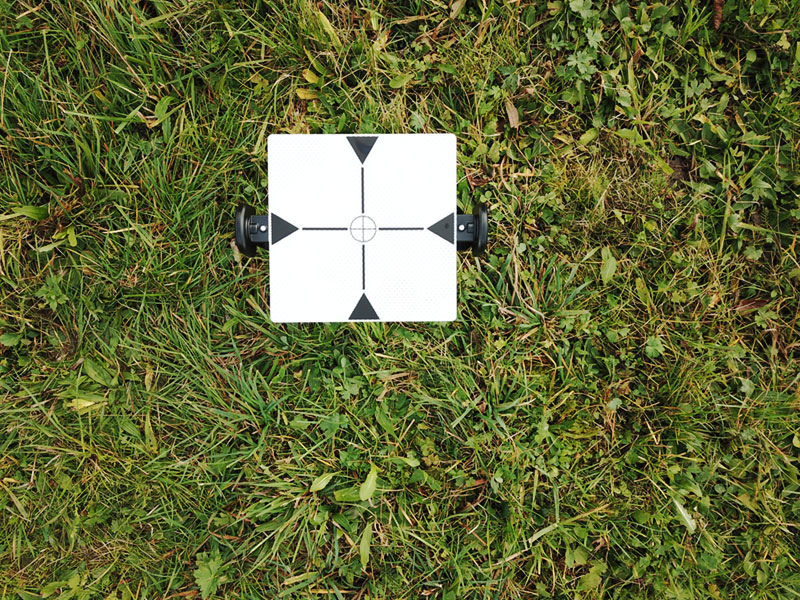 A) Können die Laserscanner-Marken auf jedem gängigem Stativ oder Dreifuß platziert werden. B) Können die Marken exakt über einem RS Mini Prisma platziert werden.